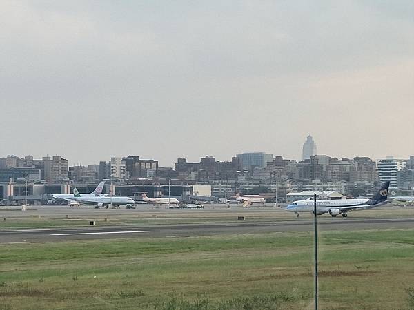 機捷通車,桃園機場第三航廈也正在興建,看著松山機場稀落的班機,喝著果汁,不尤地感嘆起未來松機的命運,或許能在這悠閒時光屈指可數了
